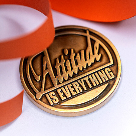Step 3: Make the recognition moment special - Award the custom coins in a meaningful way. This could be during a team meeting, company event, or during a one-on-one with leadership. This helps maximize the impact of the award, and allows coworkers to witness the process!