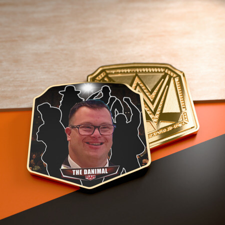 Dan is a big fan of WWE, which is why the coins take a similar shape to a championship belt! We used high polish gold to give the belt a beautiful shine and a sense of prestige. The image on the back is a picture of The Danimal himself! Adding a digital picture like this to a coin is done through a process called offset printing. Each image is printed in a custom shape and size, then pressed and sealed to the backs of the finished coins. An epoxy layer will protect the image from scratching, and the durable brass coins will keep The Danimal’s legacy going for years to come!
