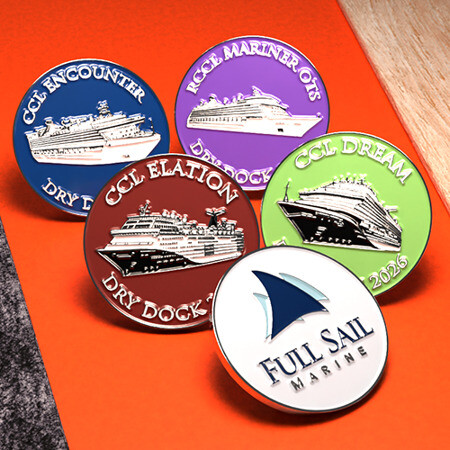 For Full Sail Marine, every completed cruise ship project represents precision, coordination, and trust earned through real-world execution. To commemorate those accomplishments, the team partnered with All About Challenge Coins to create a series of custom challenge coins, each one tied to a specific cruise ship project.