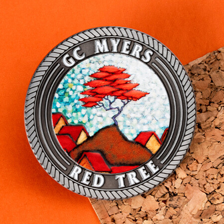 When it comes to collaboration, at All About we are here dedicated to bringing visions to life. When GC Myers wanted to bring one of his beautiful and vibrant paintings in the form of a custom challenge coin, our graphic artists used pantone colors to match the vibrancy of the original red tree painting. And at Myers request added 3D details and UV printing to ensure the coin would match the painting and stand out amongst other coins. Becoming a perfect and sentimental way to represent and promote his captivating artwork, memorializing the art to all its recipients.