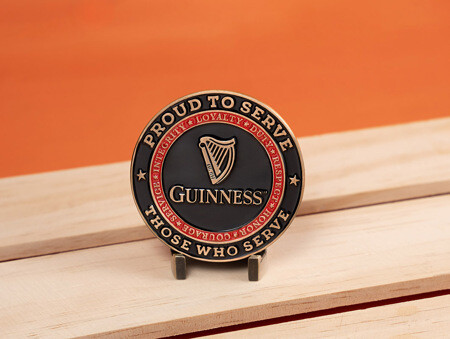 Diageo, and all their iconic brands including Guinness have great respect for the men and women who have served their country. Understanding the importance of acknowledging veterans’ contributions, Diageo sought to create a workplace culture that values and supports those who have served in the military. They came to All About Challenge Coins, to create stand out custom challenge coins that show appreciation for their veteran employees, fostering a work environment where Veterans feel valued and appreciated.
