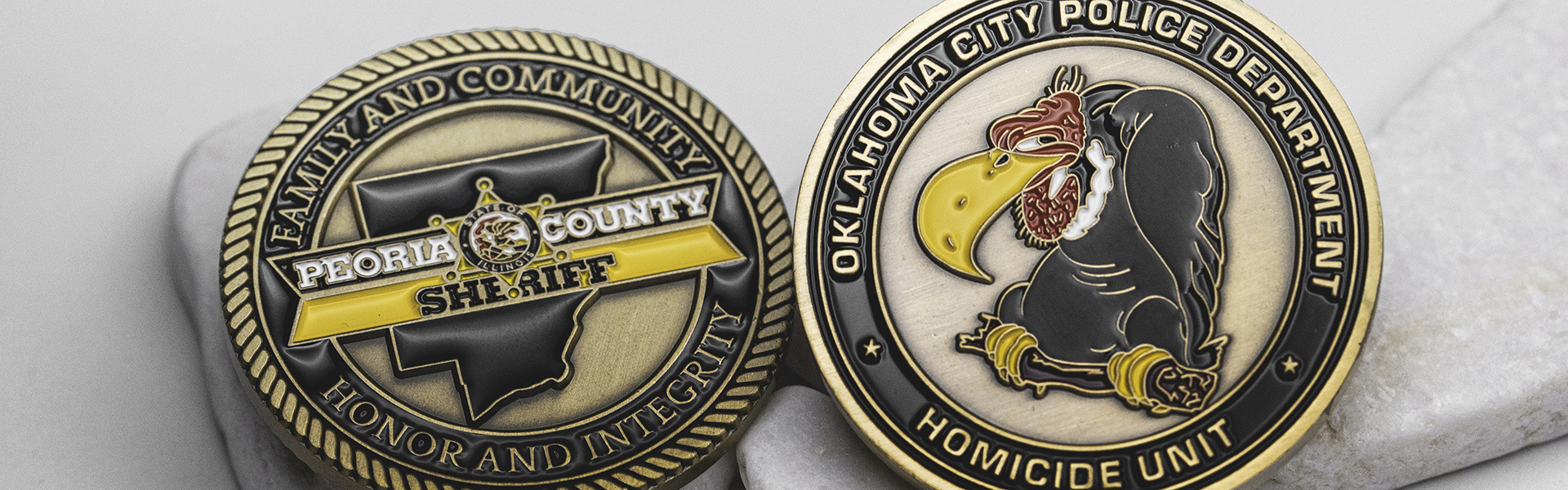 When creating a unique symbol that represents your police department’s values and goals, All About Challenge Coins provides a wide array of design options tailored to highlight your law enforcement agency’s unique identity.